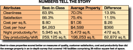 Through a series of interviews and inspections with facility executives, the authors identified six facilities that scored high on all three measures of cleanliness quality, customer satisfaction and financial performance. Further inquiry into the workings of those six facilities yielded 11 characteristics that result in selecting superior cleaning contractors and services.